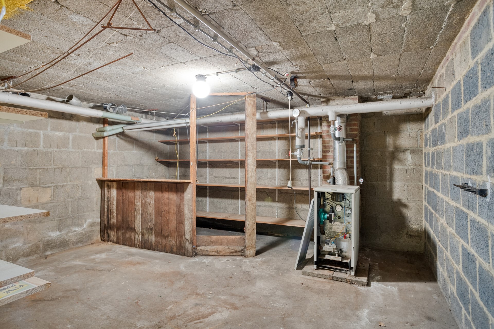 Vanuit de hal te bereiken ruim, multifunctioneel souterrain (totaal ca. 47m²), verdeeld over meerdere vertrekken, allen met een stahoogte van ca. 1,95m. Hier is onder meer de opstelling van de Cv-ketel (merk: Remeha eigendom & bouwjaar 1989) gerealiseerd (Cv-ketel is afgekoppeld). Dit souterrain biedt volop mogelijkheden voor het opslaan van spullen en/of voor andere doeleinden. Bovenaan de keldertrap is de opstelling van de geiser (Nefit) voor de warmwatervoorziening.