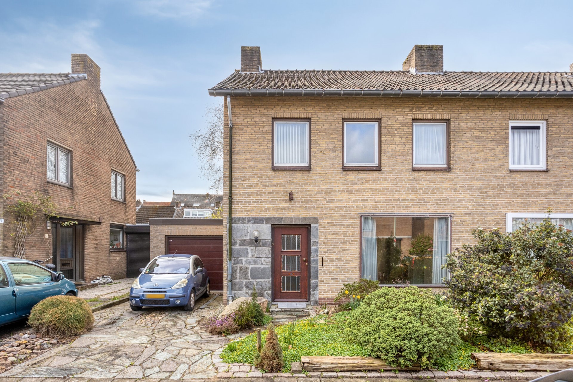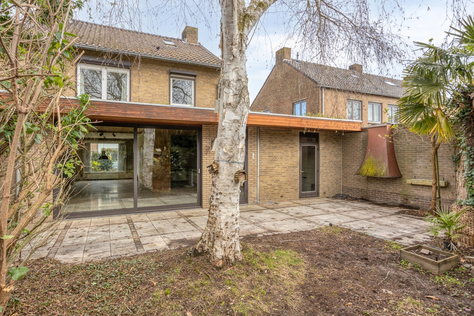 Karakteristieke 2-onder-1-kapwoning met ruime aanbouw, garage en een diepe, groene achtertuin.